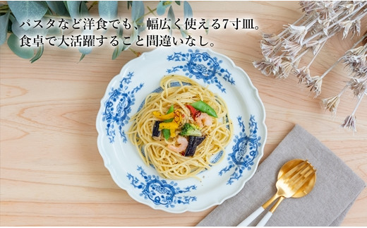 〈嘉久正窯〉唐草桔梗渕7寸皿(2枚組)