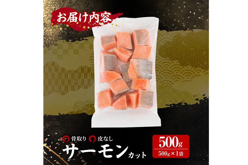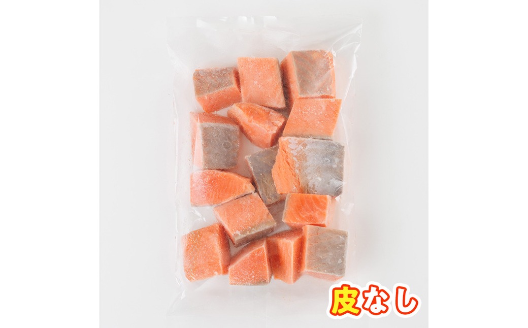- 骨取り 皮なし サーモン カット(500g×1袋) 鮭 ダイスカット 小分け 骨とり 骨なし 骨取り済 カット済 簡単 魚 冷凍 お弁当 おかず 【AW-77】【丸正水産】