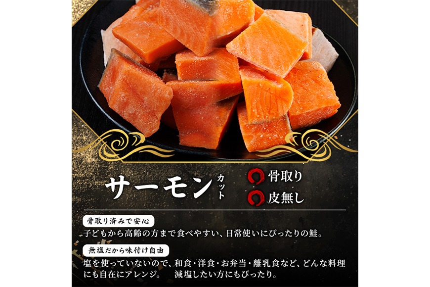 骨取り 皮なし サーモン カット(500g×1袋) 鮭 ダイスカット 小分け 骨とり 骨なし 骨取り済 カット済 簡単 魚 冷凍 お弁当 おかず 【AW-77】【丸正水産】