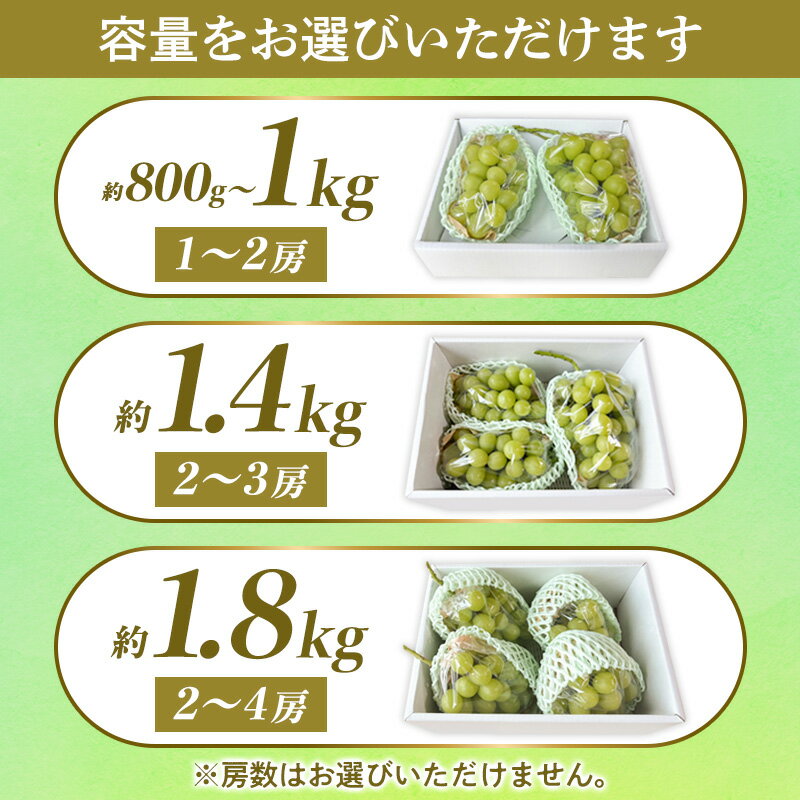 【ふるさと納税】はじける美味しさ!山形の朝どりシャインマスカット 選べる 約800g~1kg 1~2房 約1.4kg 2~3房約1.8kg 2~4房【令和8年産先行予約】FS25-134