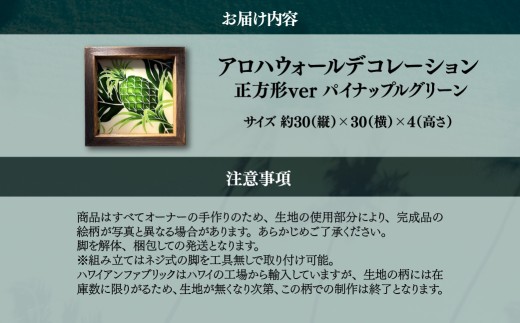- ハワイアン家具 アロハウォールデコレーション パイナップルグリーン ※正方形ver ONJAD006