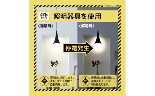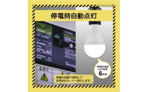 - 〈innowa〉防災LED電球(電球色) LED 電球 E26 50W相当 非常時 停電時 防災 懐中電灯 ランタン 省エネ 自動充電 東京 新宿 0170-008-S07