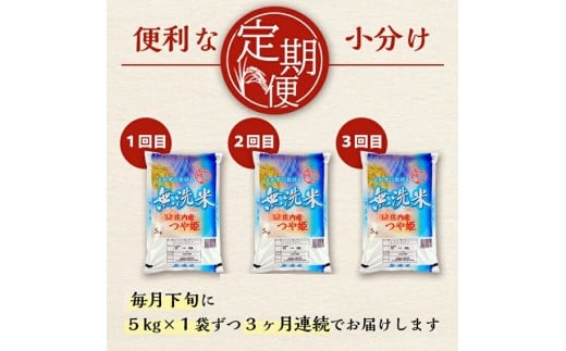 ≪3ヶ月定期便≫ 無洗米 つや姫 5kg×3ヶ月連続 計15kg 特別栽培米 山形県庄内産 毎月下旬にお届け 東北 山形県 酒田市 庄内地方 庄内平野 米 無洗米 ブランド米 庄内米 定期便 SA 酒田倉庫 SG0102