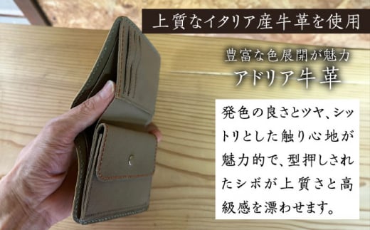 【カラシ】【職人手作り】イタリア産 アドリア牛革 『左利き用』ベーシック二つ折り財布(選べる15色)《築上町》【たけもとかばん】革製品 レザー 牛革 [ABAM048]