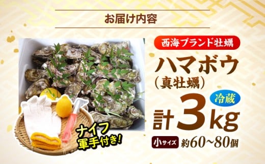 カキ【2026年2月よりお届け】【着日指定可】 西海ブランド 牡蠣 「 ハマボウ 」 約3kg(60~80個)(小サイズ)<ハマフジ水産> [CES010] 牡蠣 カキ 殻つき かき 冷蔵 西海 長崎 贈答 ギフト 日時指定可 牡蠣 カキ ナイフ付き