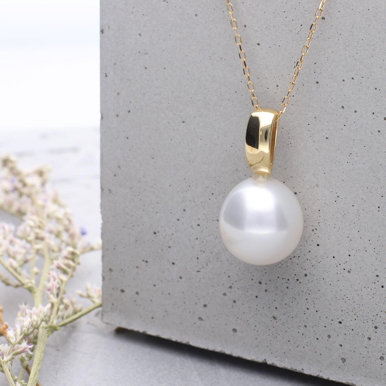【響】シロチョウパール(南洋 白蝶真珠) 10mm ショートオーバル K18 イエローゴールド ペンダントトップ