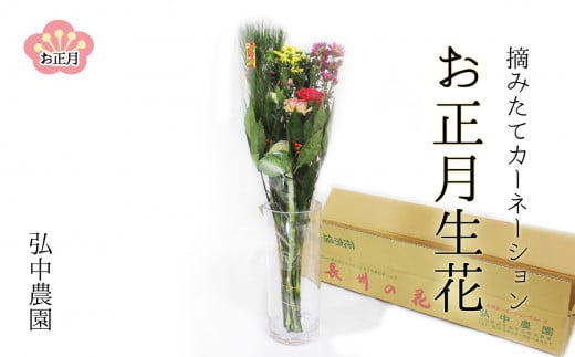 - 摘みたてカーネーション 生花の迎春花束 生け花セット【お正月飾り】 j8-18