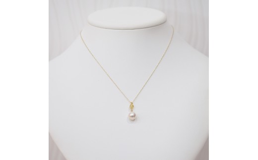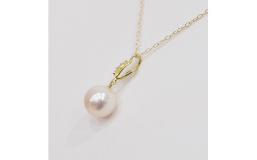 S101-490_あこや真珠 天草 ネックレス ペンダント ダイヤモンド 0.02ct 8mm - 8.5mm ホワイトピンク 真珠 K18 音符 K18YG
