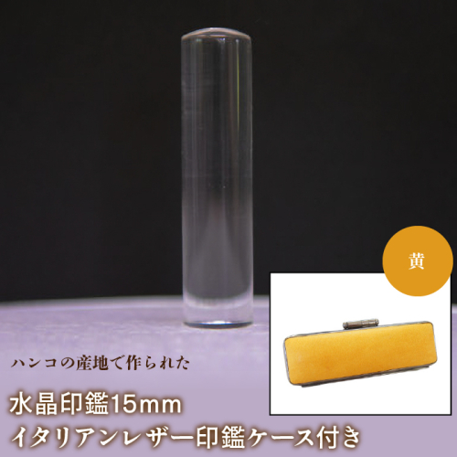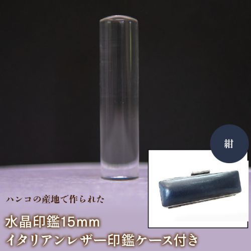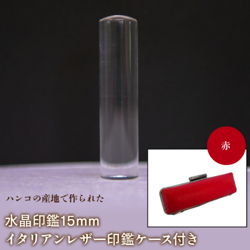 はんこの産地で作られた水晶印鑑15mm イタリアンレザ−印鑑ケース付き FCH005