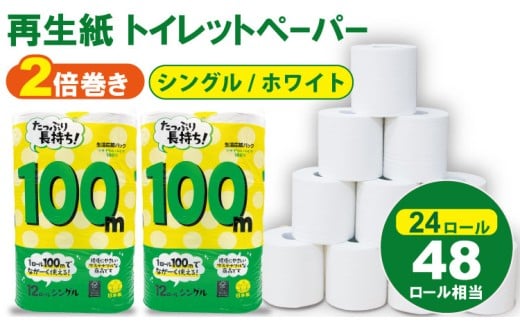 - 【1月】トイレットペーパー シングル ホワイト 100m 2倍巻 (2パック/24ロール) 再生紙 トイレットペーパー 100% 日用品 国産 白 SDGs 備蓄 防災 リサイクル エコ 消耗品 生活用品 無香料 トイレットペーパー 2倍巻き トイレ といれっとぺーぱー コトブキ製紙 トイレットペーパー