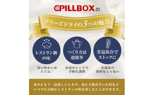 - 【定期便】PILLBOX ピルボックス 高級フリーズドライ 月替わり 3ヶ月 定期便 フリーズドライ オニオングラタンスープ オマール海老のビスク トリュフリゾットの素 即席 常温保存 保存食 インスタント 【ピルボックスジャパン(株)】 【ho1639】