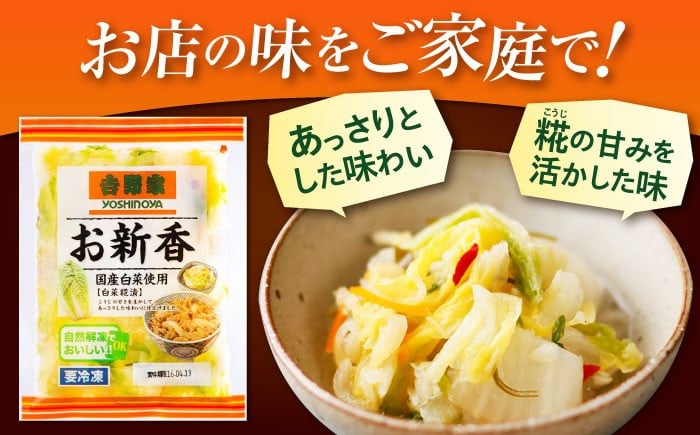 - お新香 吉野家のお新香 吉野家 お新香 100g×20パック 冷凍 白菜糀漬 漬物 小袋 簡単解凍 牛丼のお供 つけもの お漬物 ご飯のお供 おかず 白菜 塩漬け おつまみ つまみ 和食 日本食 ごはん 食卓 人気 おすすめ ギフト 贈答 プレゼント お店の味 あっさり 糀の甘み 糀 こうじ 国産白菜 しゃきしゃき 野菜 簡単 解凍 広島県福山市/ブースト株式会社[BAGH002]