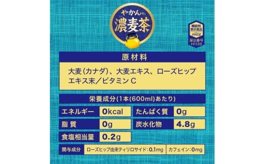 - 【3ヶ月定期便】やかんの濃麦茶 from 爽健美茶 600mlPET×24本|コカ・コーラ 飲料 ドリンク 飲み物 お茶 北海道 札幌市