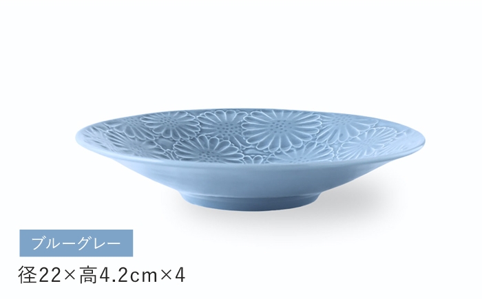 - 【波佐見焼】マリーゴールド ボウルL ブルーグレー 4枚セット 食器 皿【翔芳窯】 [FE477]