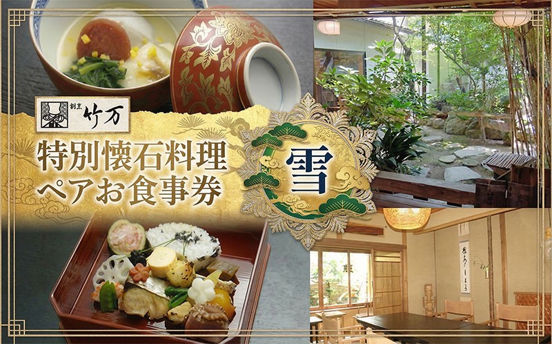 - 割烹竹万 特別懐石料理 雪 ペアお食事券 割烹料理 食事 ご飯 飲食 チケット ペアチケット 体験 体験チケット 懐石 懐石料理 お祝い お顔合わせ 挨拶 接待 コース料理 個室 送料無料 神奈川県 平塚市