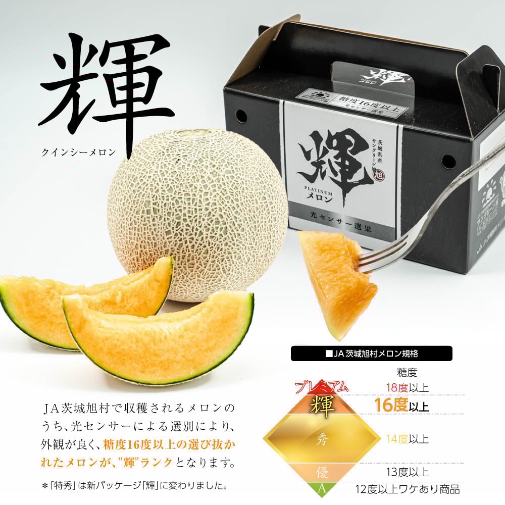 - 受付終了間近!品質が見える メロン \光センサーで計測 糖度16度以上!/クインシー 【輝】等級 3玉~5玉 茨城 鉾田 めろん サングリーン旭 フルーツ 旬 プレゼント 人気 おすすめ 贈り物 甘い ヘルシースイーツ 産地直送 農業王国 赤肉 クインシーメロン 輝 特秀 赤 5月以降発送