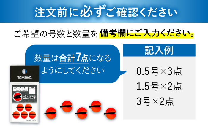 カラーシンカー ラウンドタイプ オレンジ 選べる号数 7点セット 釣り具 釣具 釣り 磯釣り 釣り用品 魚釣り フィッシング アウトドア オモリ おもり カラーシンカー シンカー 多治見市 / ヤマワ産業 YAMAWA [TFX015]