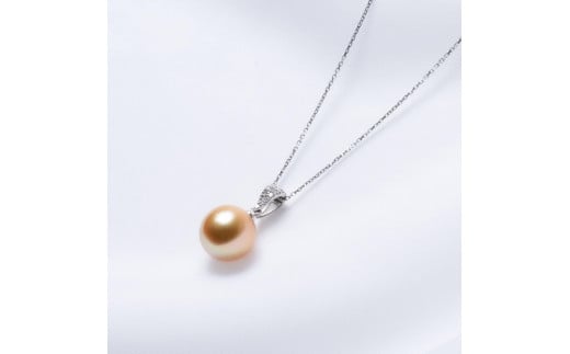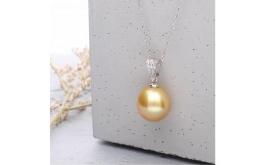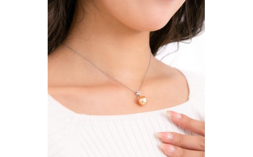 【星涼し】ゴールデンパール(南洋 白蝶真珠) 10mm セミラウンド ダイヤモンド ペンダントトップ Pt900 プラチナ