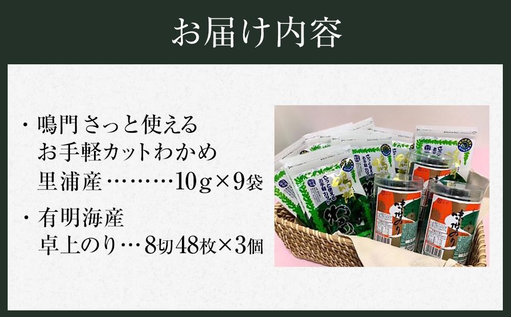 - 大野卓上のり3本 鳴門カットわかめ10g×9 (計90g) (徳島県認証マーク付) | 鳴門わかめ わかめ 生わかめ 海鮮 海産 詰め合わせ 詰合せ 小分け 保存食 味噌汁 みそ汁 酢の物 サラダ 簡単調理 手軽 人気 おすすめ 海の幸 徳島