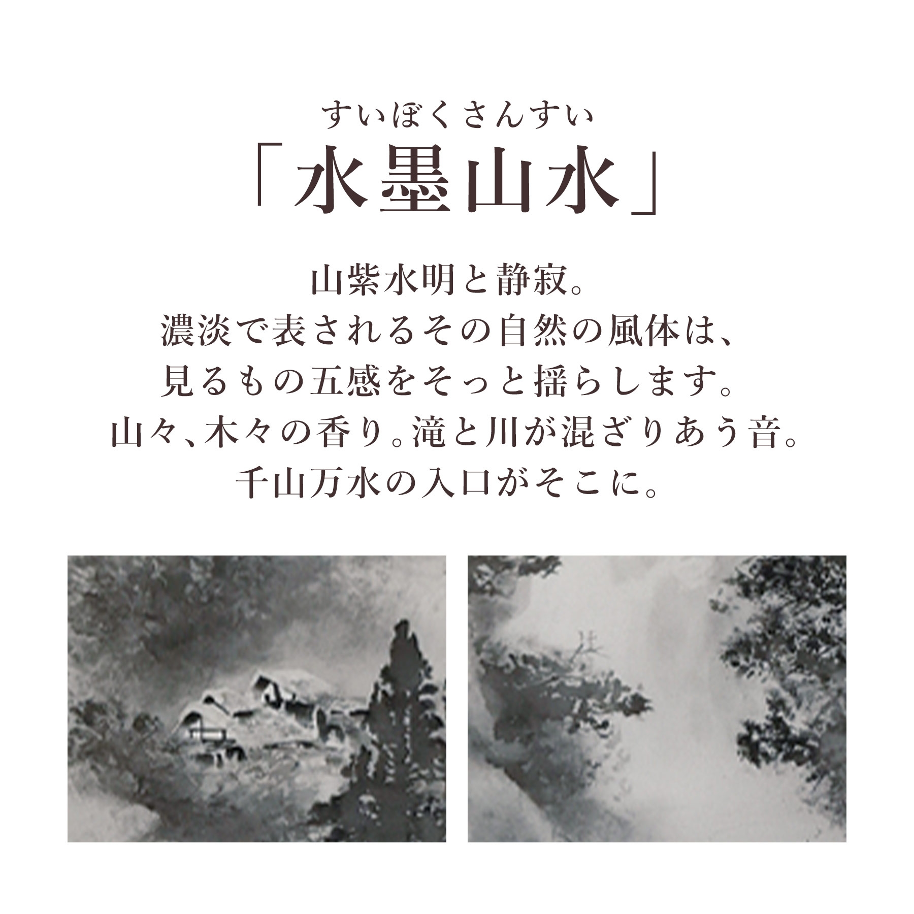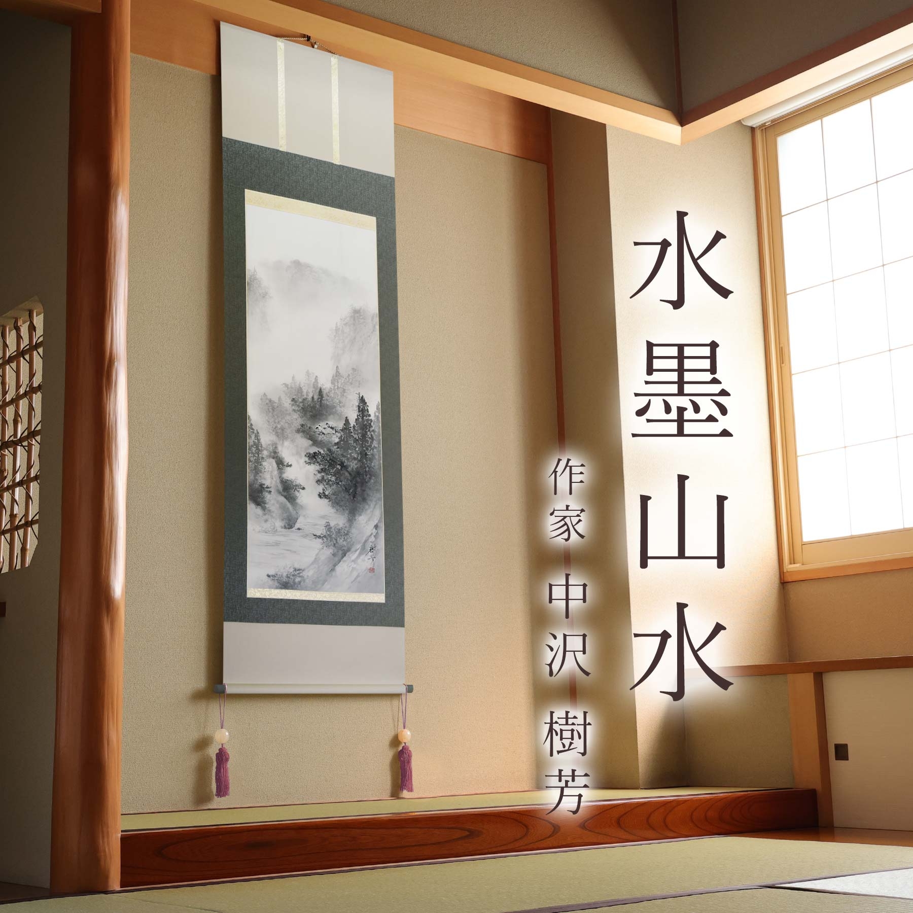 - 掛け軸「水墨山水」 中沢樹芳 尺五立 サイズ:54.5×190cm 桐箱付 掛け軸 和室 おしゃれ 日本画 表装 床の間