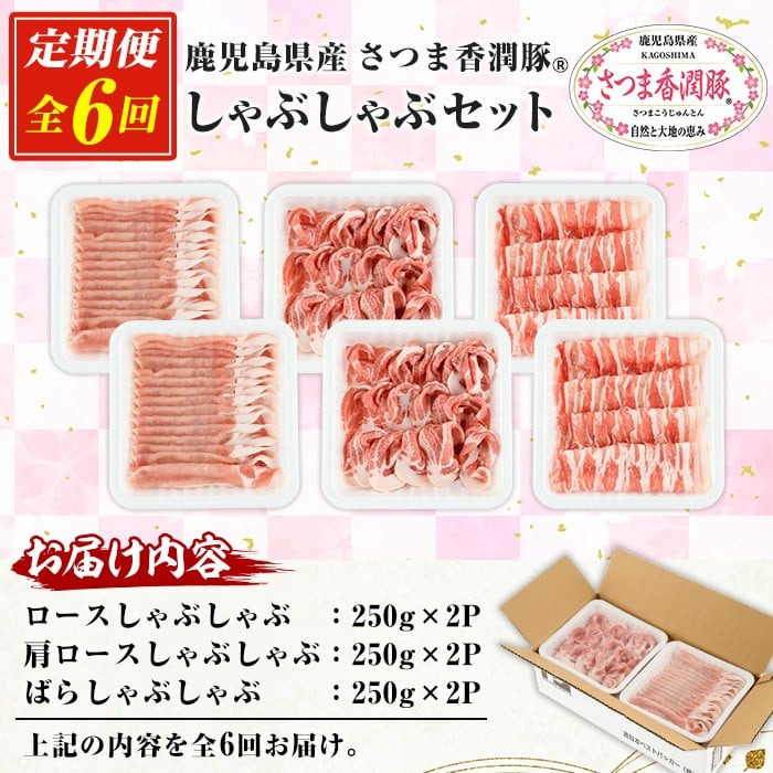 - 【6か月定期便】鹿児島県産 さつま香潤豚 ® しゃぶしゃぶ セット 総量 9.0kg ( ロース 250g×2、肩ロース 250×2、ばら 250g×2) を 6回 お届け ! 白豚 部位 食べ比べ 大容量【E-158H】