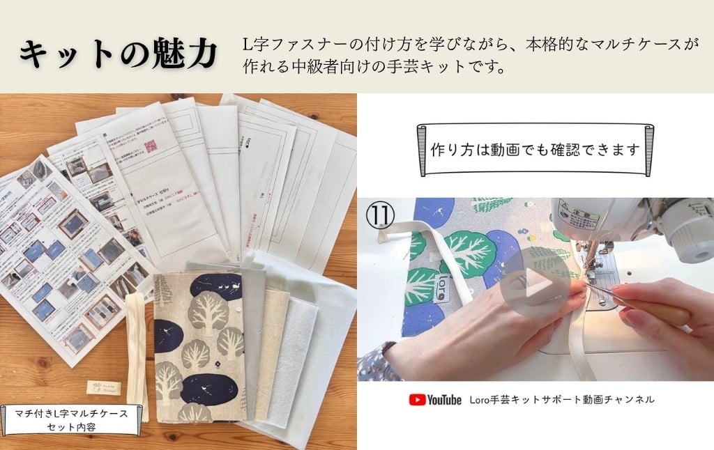 マチ付きL字マルチケース手芸キット【生地 北欧森グリーン×ブルーグレー】/【生地 北欧森イエロー×ベージュ】| 手芸キット 中級者 マルチケース ポーチ ハンドメイド 北欧風 手芸用品 手づくり 長野県 千曲市