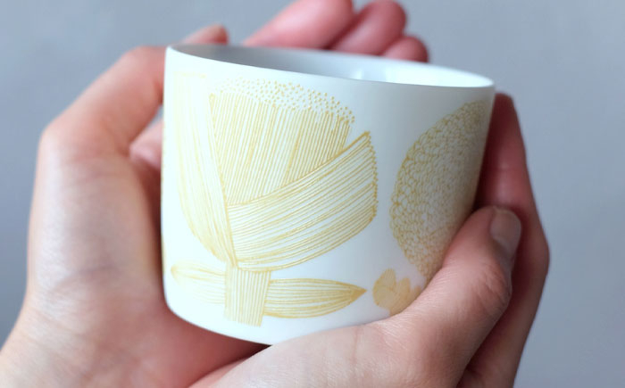 - 【美濃焼】 カップ ペアセット <BIRDS' WORDS> DAY BY DAY CUP [FLOWERS] イエロー × グレー 瑞浪市 / FLYWAY [AZCC010]