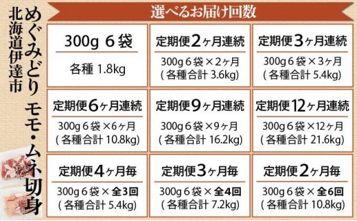 - <選べる容量/配送月>北海道産 めぐみどり モモ ムネ 切身 各計1.8kg(300g×6袋)|鶏もも 鶏モモ もも 鶏むね 鶏肉 チキン 銘柄鶏 肉 冷凍 小分け 唐揚 焼鳥 鍋 ソテー プライフーズ 伊達 55250944-sku