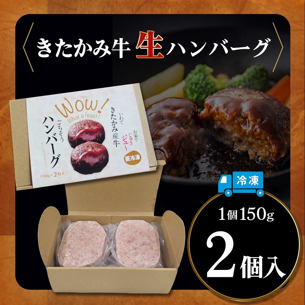 北上牛 生ハンバーグ 2個入り (1個 150g )ハンバーグ 牛肉 豚肉 肉 きたかみ牛 ブランド牛 和牛 惣菜 おかず 冷凍 岩手県 北上市 A0362 お肉のたかゆう お中元 お歳暮 ギフト プレゼント 贈り物 クリスマス お正月 BBQ ブランド牛 国産牛 お正月料理 おせち代わり 冬の贅沢 パーティー向け お歳暮 年末大人気