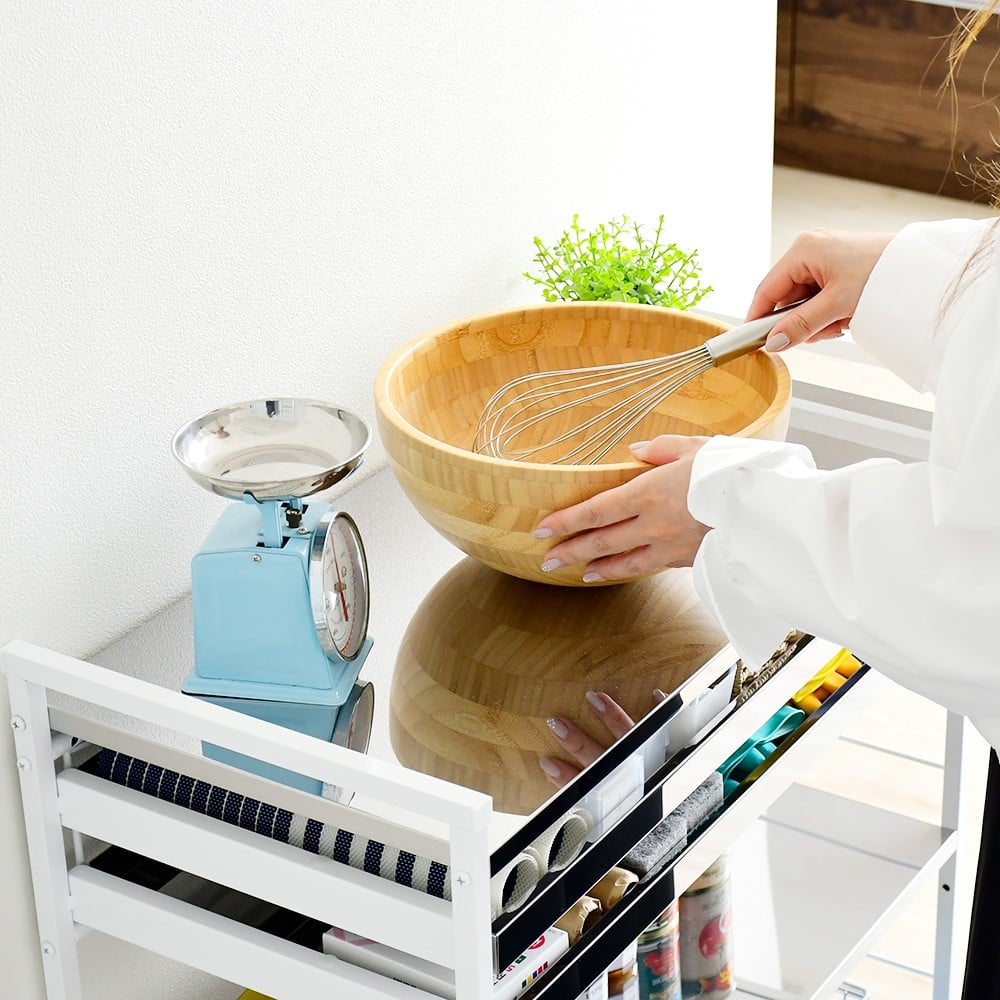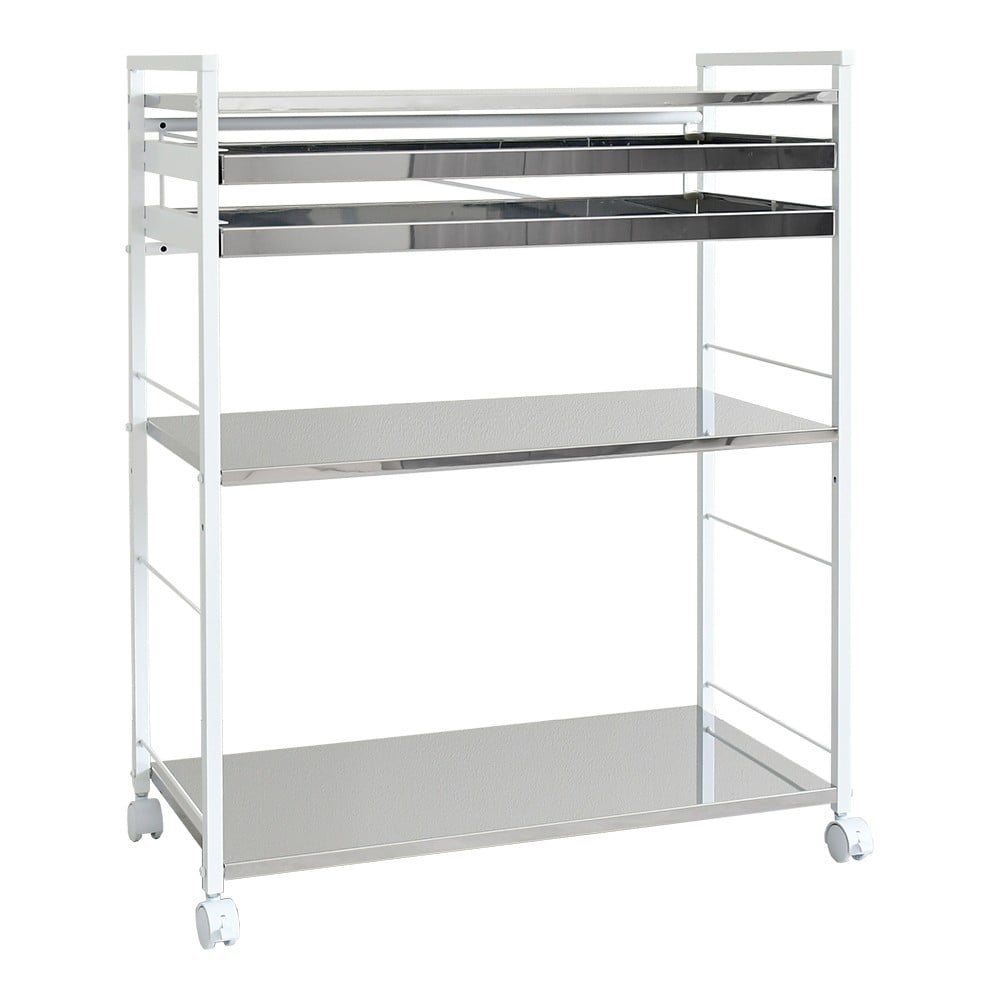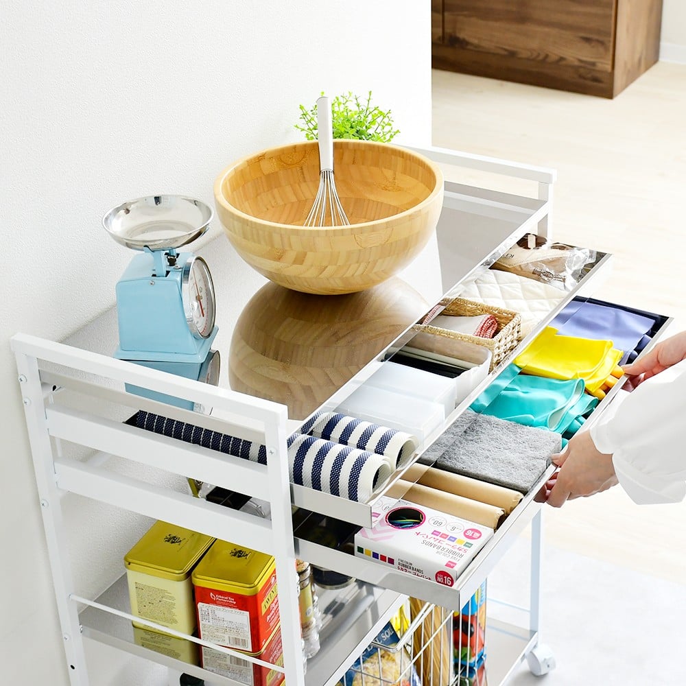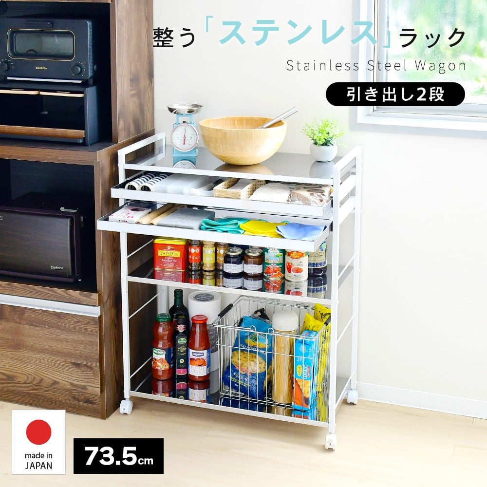 - クラルテ ステンレスワゴン[引出2・幅73]| A198 足立製作所 日本製 キッチン 収納 ホワイト トロリー キャスター 燕三条【049S013】