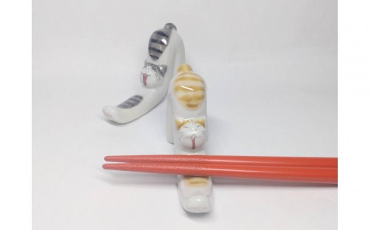 - ペア箸置 のび猫 茶トラ・サバトラ 九谷焼 雑貨 日用品 食器 箸 ペア 箸置 猫 茶トラ サバトラ 九谷焼 銘品 キッチン用品 インテリア 伝統工芸 和食器 デザイン コレクション 置物 石川 金沢 北陸 復興支援 復興応援