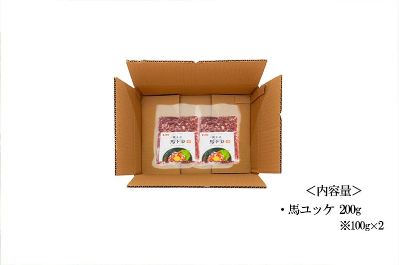 【純国産・国内肥育】馬刺し ユッケ トロ 200g 100g×2 希少部位 自宅で専門店の味 お酒のお供に 熊本名物 熊本と畜 贈り物 贈答 ギフト 急速冷凍 小分け 真空パック 鮮度を保持 専用箱 熊本 阿蘇 小国町 チルド 冷凍配送