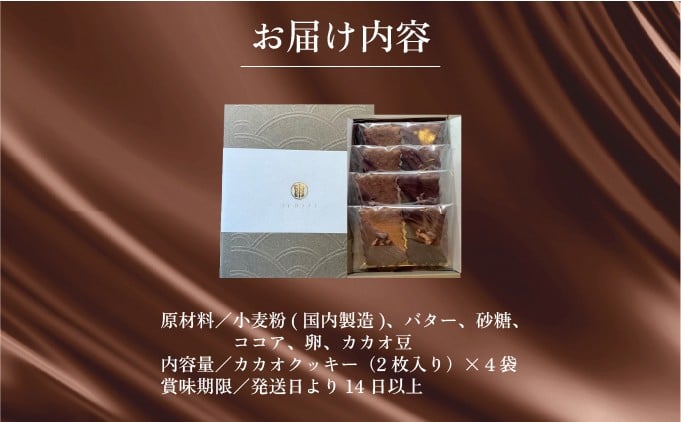 - カカオクッキー4袋入りギフトBOX スイーツ お菓子 チョコレート チョコ カカオ デザート プレゼント 贈り物 ICHIJI いちじ ホワイトチョコレート [078-a015-sku]