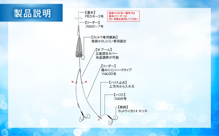 カットウトライシンカー Wアーム完全仕掛 3点セット / 釣り具 釣具 釣り 磯釣り 釣り用品 磯 小物 魚釣り フィッシング アウトドア ガン玉 ゴム張り オモリ 渓流釣り ふぐ釣り フグ釣り フグカットウ釣り カットウ釣り / 多治見市 / ヤマワ産業 YAMAWA [TFX007]