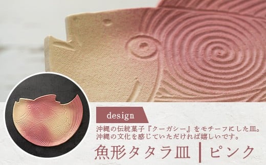 魚形タタラ皿(ピンク) 【 沖縄県 石垣市 石垣島 食器 皿 クーガーシ 陶器 手作り 工芸品 】TC-6
