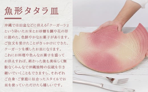 - 魚形タタラ皿(ピンク) 【 沖縄県 石垣市 石垣島 食器 皿 クーガーシ 陶器 手作り 工芸品 】TC-6