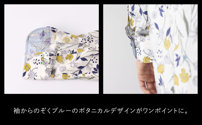 【少数限定生産!】ワイシャツ 長袖 ホワイト ブルー ボタニカル 花柄 1着【山喜ソーイング】 [QBH006] / 長崎県 佐々町