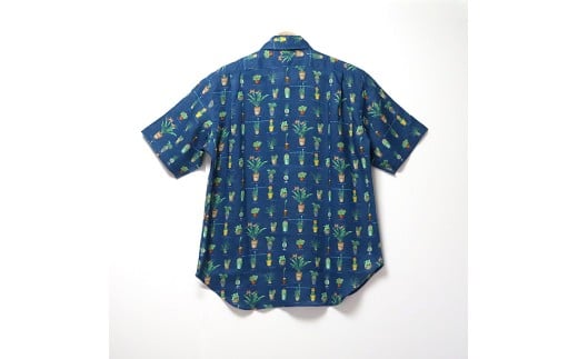 CLOFT 麻100%半袖オリジナルプリントシャツ”サボテン多肉植物柄”(C/#28 ブルー) L 新宿区 シャツ カジュアル オリジナル 柄 上質 こだわり プレゼント 半袖 夏服 青 0139-029-S07-5