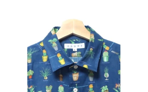 - CLOFT 麻100%半袖オリジナルプリントシャツ”サボテン多肉植物柄”(C/#28 ブルー) L 新宿区 シャツ カジュアル オリジナル 柄 上質 こだわり プレゼント 半袖 夏服 青 0139-029-S07-5