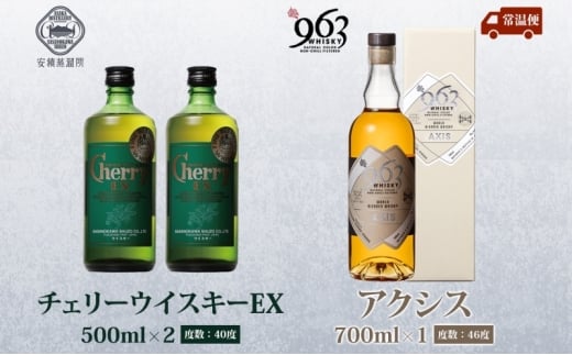 チェリーウィスキーEX40% 963 アクシス ブレンデッドウイスキー 2種セット ウイスキー お酒 アルコール ハイボール 原酒 樽 熟成 AXIS オリジナル 宅飲み 晩酌 ウィスキー ギフト 人気 お取り寄せ ご当地 送料無料 福島県 郡山市
