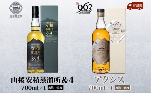 YAMAZAKURA 安積蒸溜所&4 963 アクシス ブレンデッドウイスキー 2種セット ウイスキー お酒 アルコール ハイボール 原酒 樽 熟成 AXIS オリジナル 宅飲み 晩酌 ウィスキー ギフト 人気 お取り寄せ ご当地 送料無料 福島県 郡山市