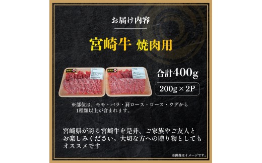 【A4等級以上】宮崎牛焼肉用 200g×2P 計400g(内閣総理大臣賞 A4 A5 宮崎牛 牛肉 黒毛和牛 焼肉 赤身 霜降り モモ ロース 宮崎県)