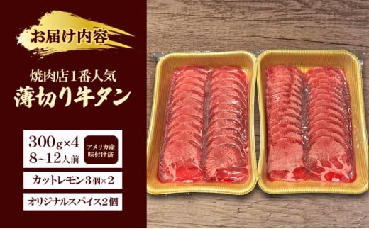 焼肉店1番人気 薄切り牛タン 8~12人前 300g×4 牛肉 焼肉 焼き肉 アウトドア BBQ