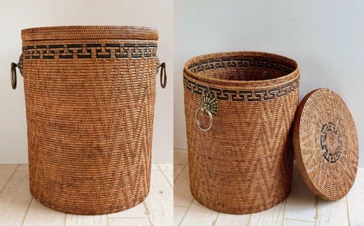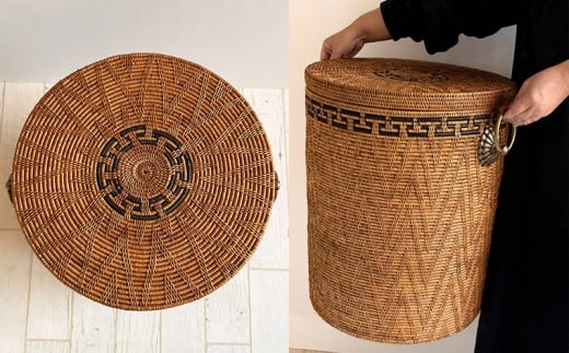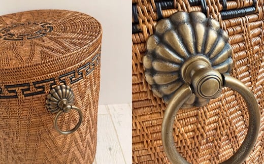 - BAX-416SIN-M アタ 真鍮取っ手蓋付き円柱バスケット(黒模様・φ42×H50) 真鍮 取っ手 円柱 雑貨 収納 かご 大きい ケース バスケット 箱 物入れ ランドリーボックス インテリア 洗濯物 玄関 プール グッズ オリジナル 手作り おすすめ 模様 黒 プレゼント ギフト おしゃれ 高級感 職人 便利 数量限定 バリ島 アジアン アタブラス ATABRASS SOA 千葉県 富津市