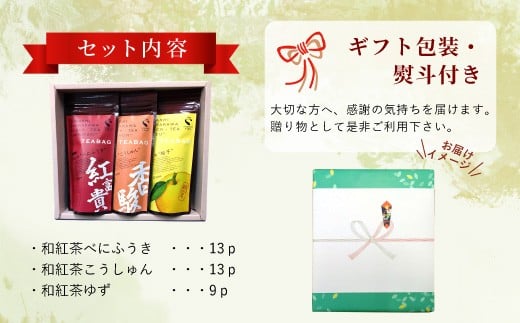- 【熨斗対応可】 和紅茶ティーバッグ ギフトセット 大3種 べにふうき こうしゅん ゆず 東白川村産 岐阜県産 特選 和紅茶 紅茶 ティーバッグ お茶 ティーバック 贈答用 贈答 ギフト プレゼント 熨斗 お歳暮 御歳暮 茶広農園