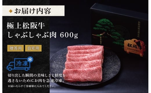 極上 松阪牛 しゃぶしゃぶ 600g 牛追道中 肉 牛 牛肉 和牛 ブランド牛 高級 国産 霜降り 冷凍 リブロース サーロイン US17