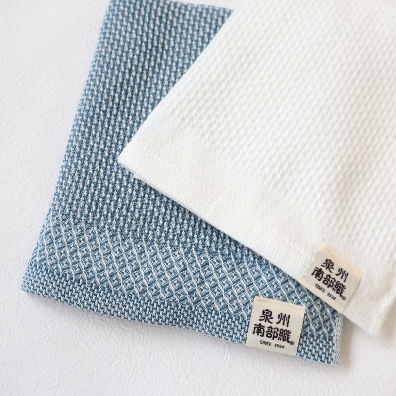 【ギフトボックス】泉州南部織 ハニカム織フェイスタオル 2枚(ブルーグリーン/ホワイト) G2007