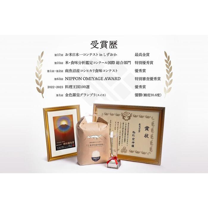 - 【定期便】【令和7年産】2kg×3ヶ月 最高金賞受賞 数量限定南魚沼産コシヒカリ 化学肥料不使用・農薬8割減栽培米「こまがた家のお米」