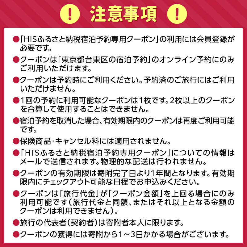 - HISふるさと納税宿泊予約専用クーポン(東京都台東区)6,000円分