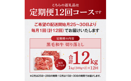 S001-001-T12_04_【定期便12回】黒毛和牛 切り落とし1kg(500g×2P)12か月連続お届け【2026年4月発送開始】